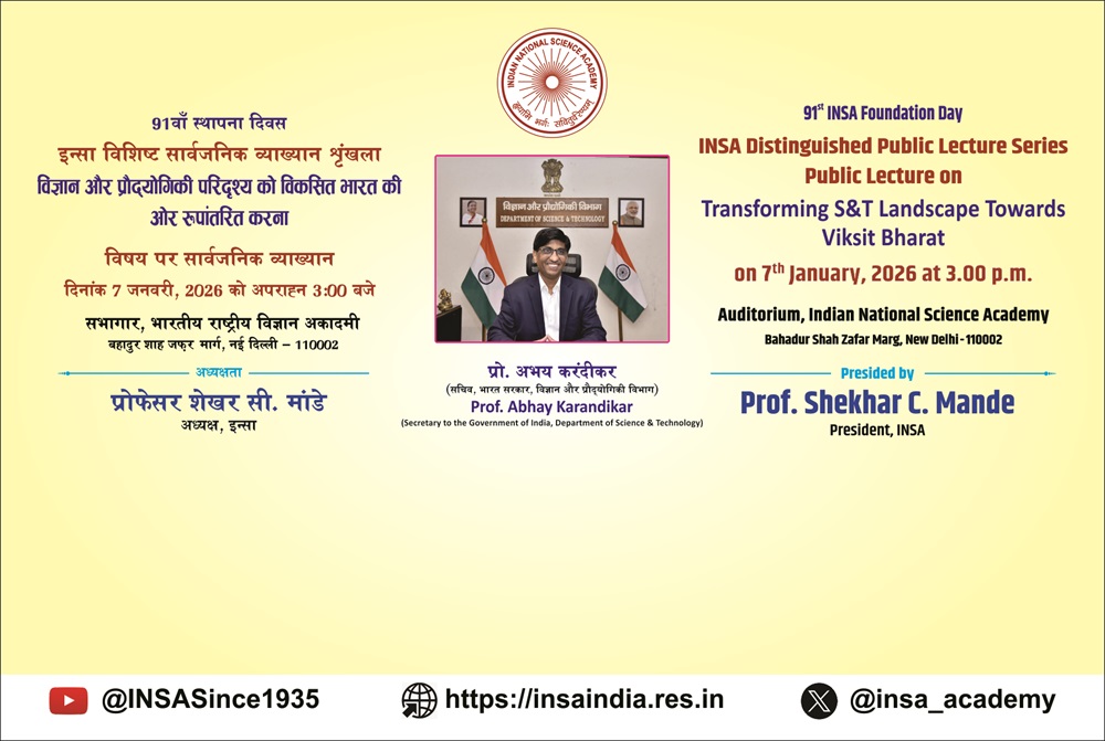 At the very outset, I wish to place on record a deep sense of gratitude and appreciation to the outgoing President, Prof. Ashutosh Sharma, and to the distinguished members of the Council whose term concluded on 31st December 2025. Service to the Council and leadership of a national academy demand exceptional personal commitment, wisdom, and foresight. Such service plays a vital role in nurturing scientific excellence and in providing guidance to the scientific community. The Indian National Science Academy has a unique and pivotal role in public engagement, in strengthening India’s partnership with the global scientific community, and in preserving and promoting the rich history of science in our country. The outgoing President and those members whose term concluded in the Council have rendered exemplary service in advancing these missions, and they deserve our sincere appreciation.